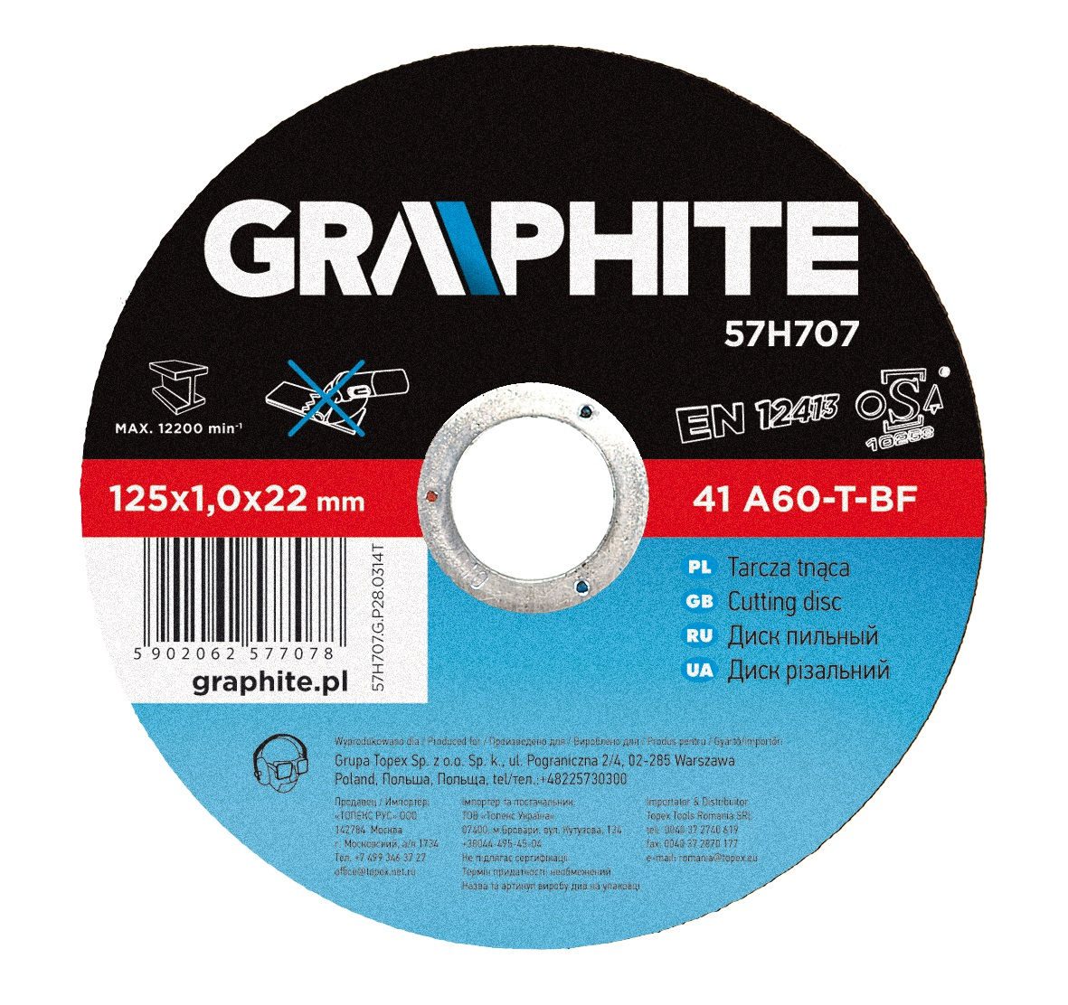 Tarcza do cięcia metalu 115x22x1.0 mm GRAPHITE