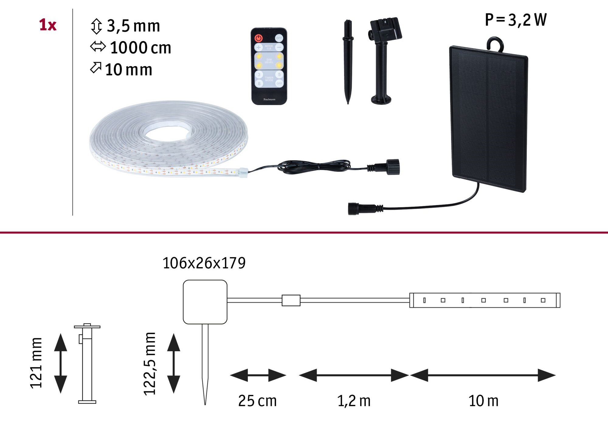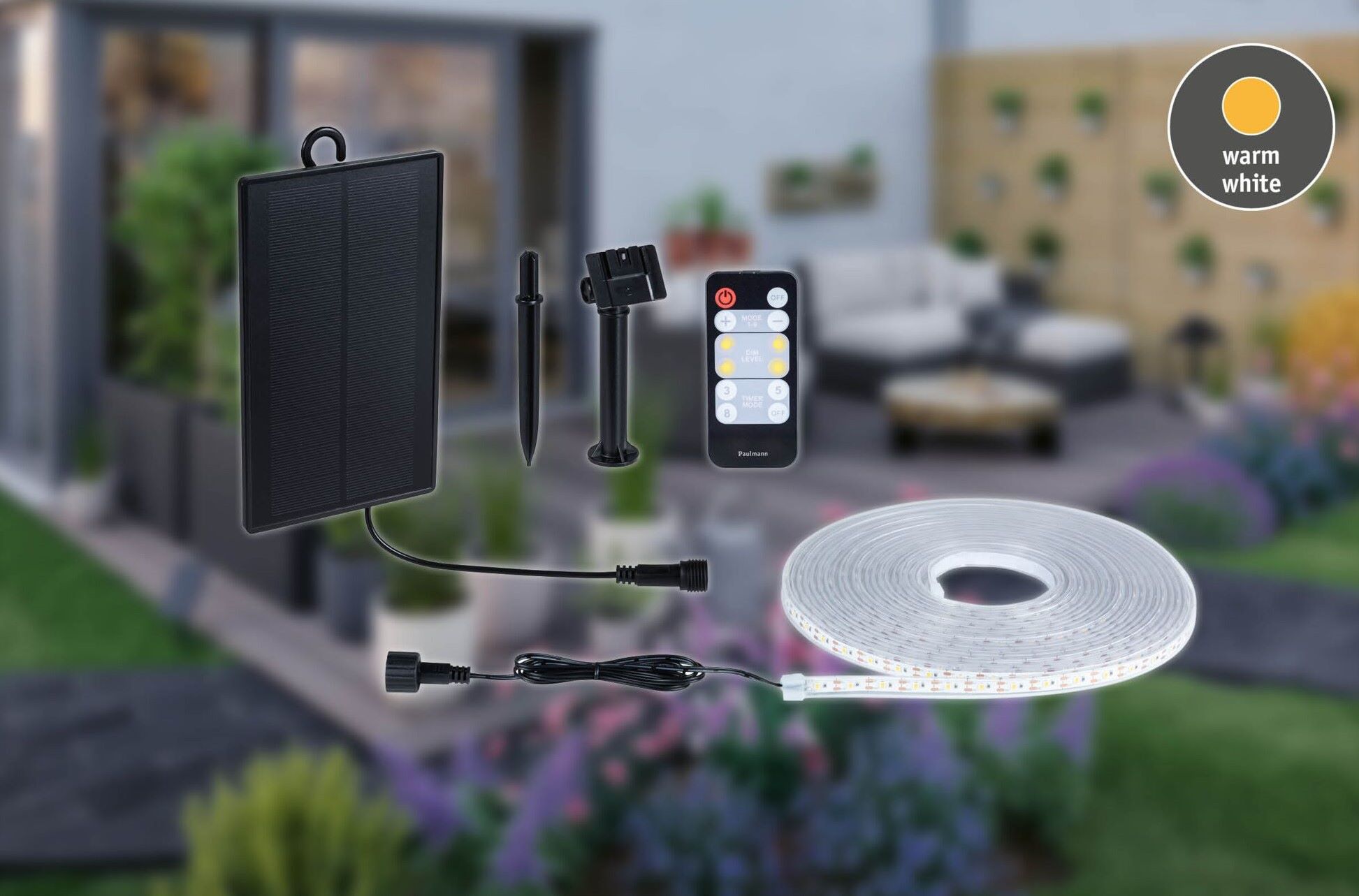 Taśma zewnętrzna LED solar 10m 3,2W DIM 3000K 28lm/m czujnik zmierzchu pilot 5V IP44 czarny / tworzywo sztuczne