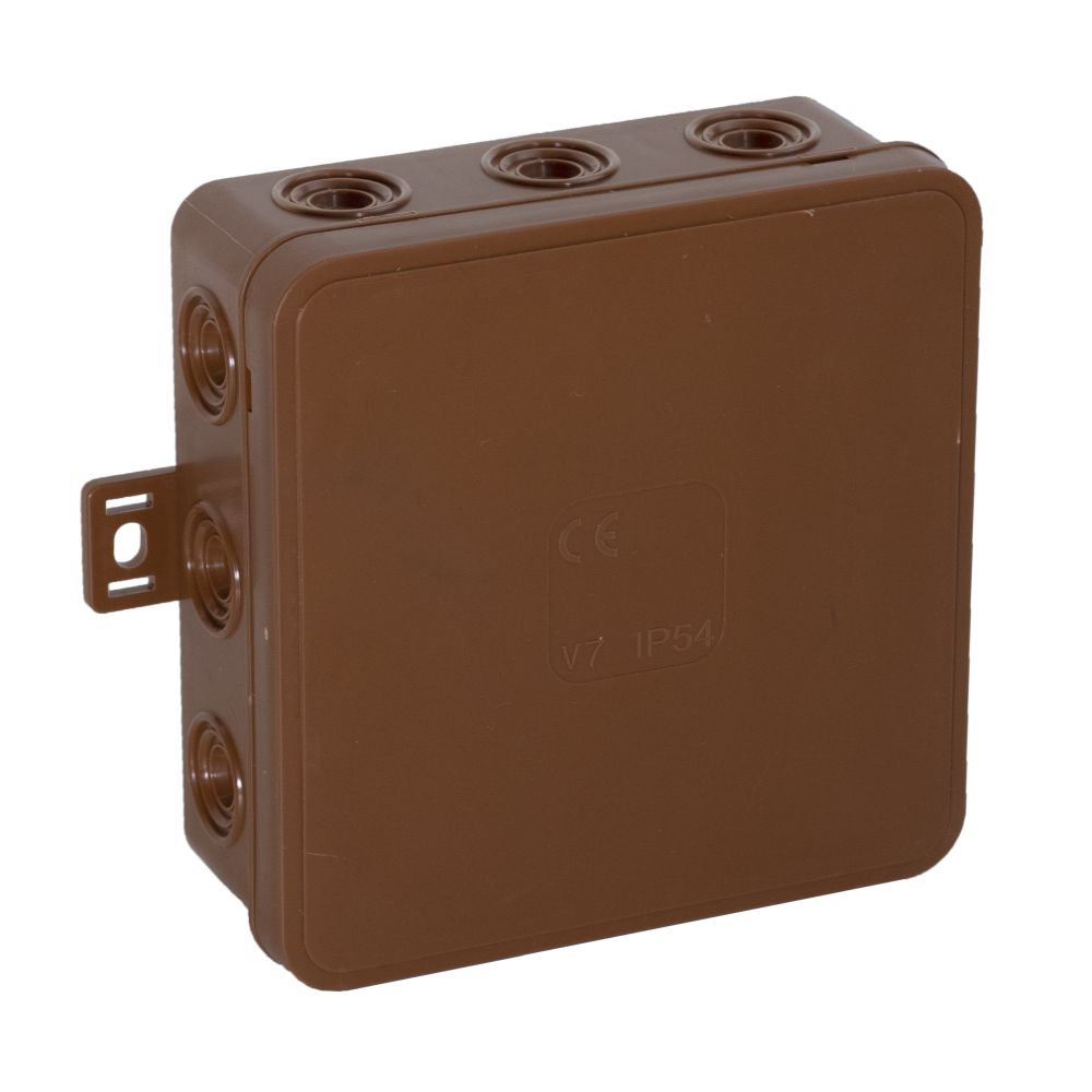 V7 Puszka Instalacyjna NT 100x100x41 IP54 IK07 Pusta 12-Wlotowa z Osłabieniami Klik Brązowy