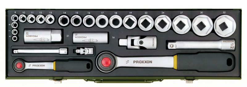 Profesjonalny zestaw kluczy nasadowych PROXXON z grzechotkami 1/2″ i 1/4″. Zestaw składa się z 27-elementów, które spełnią wymagania każdego warsztatu.