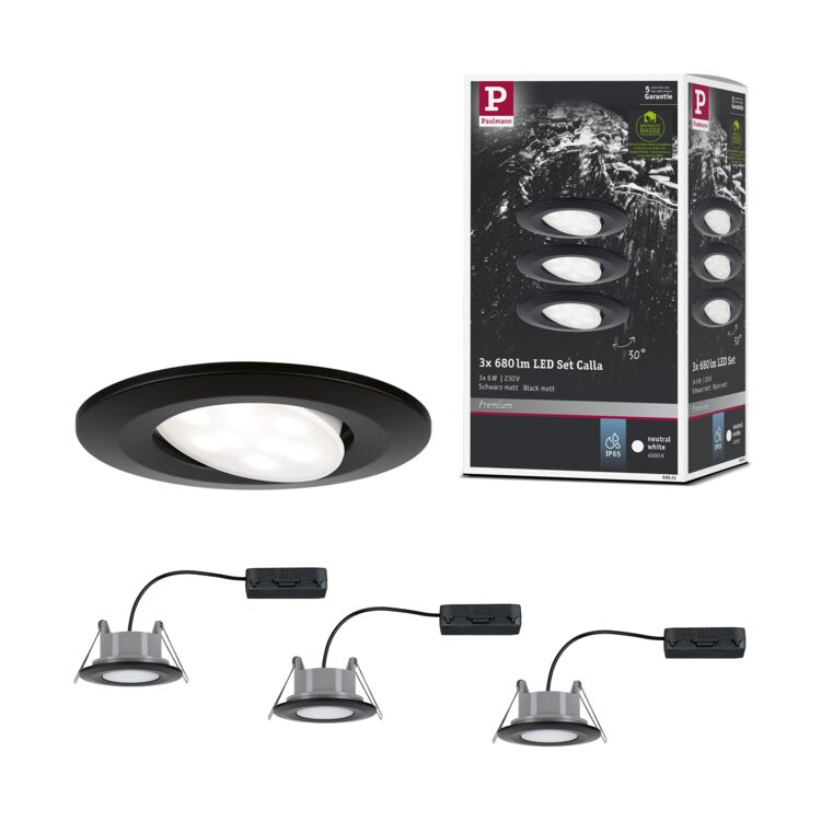 Zestaw opraw wpuszczanych CALLA LED marki Paulmann w kolorze matowej czerni to idealny wybór do pomieszczeń o podwyższonej wilgotności. Sprawdzi się w każdej łazience nadając niepowtarzalny efekt jej wnętrzu. Zestaw obejmuje trzy eleganckie oprawy wraz z źródłami światła, charakteryzujące się wysoką jakością wykonania oraz innowacyjnym designem.