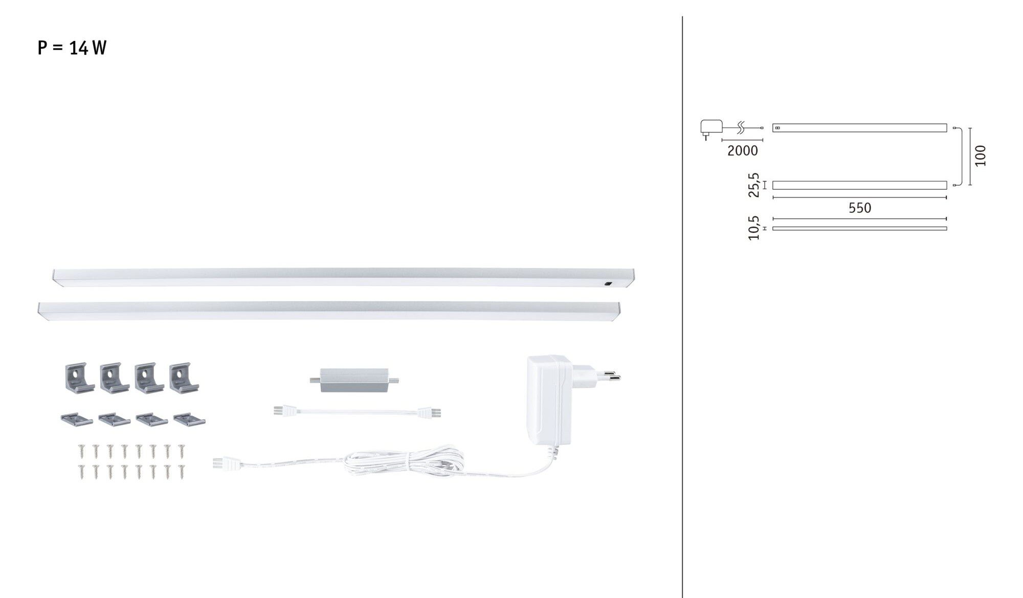 Zestaw opraw podszafkowych SET LINE DIM PIR 2x6W 2x500lm 550mm 3000K 230V/24V chrom matowy / aluminium