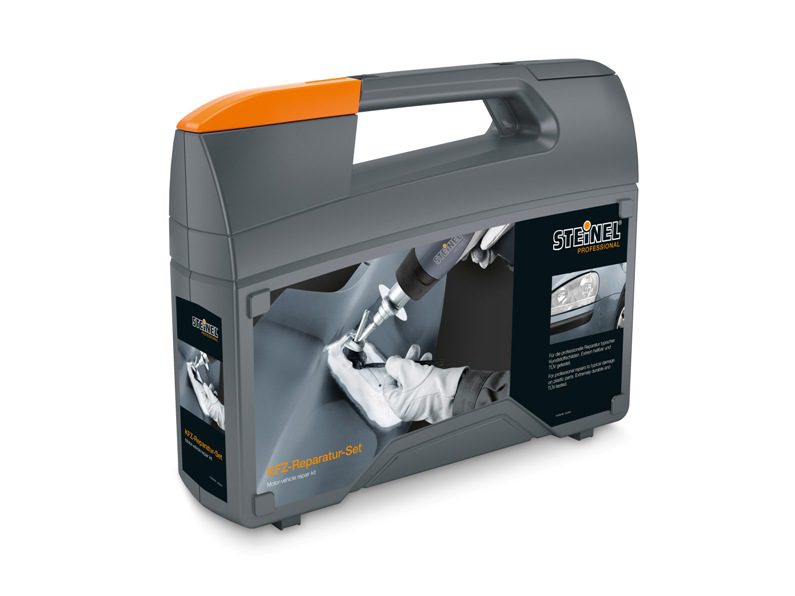 Samochodowy zestaw Steinel do naprawy uszkodzeń tworzywa sztucznego np.: PP, PP-EPDM, PE, PC, ABS, a nawet poliuretanu. Za pomocą specjalnej dyszy i temperatury 650°C siatka stalowa jest wtapiana w materiał macierzysty; spoiwo uniwersalne łączy obrabiane części dając wysoką wytrzymałość i elastyczność. Instruktaż w filmie poniżej.