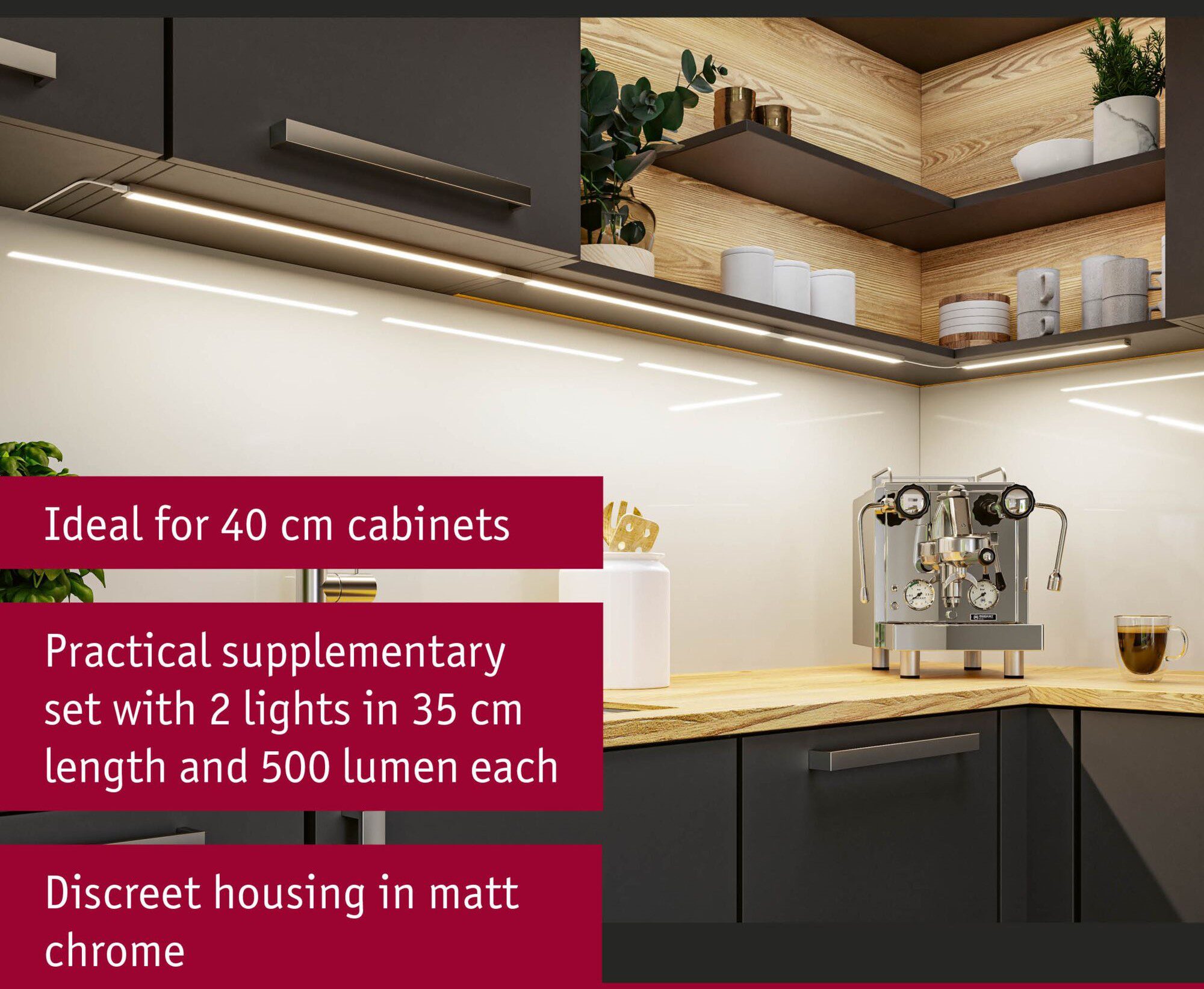 Innowacyjny zestaw uzupełniający umożliwiający efektywne oświetlenie przestrzeni podszafkowej.