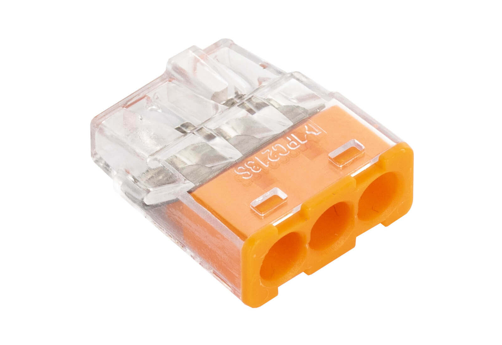 PC213S to szybkozłączka samozaciskowa bezgwintowa MINI przeznaczona do drutów o przekroju od 0,2 do 2,5 mm², idealna do różnorodnych zastosowań elektrycznych.